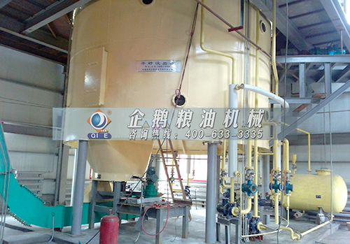溶劑浸出:將壓榨(或膨化)后的餅粕放入油浸出器,并添加有機(jī)溶劑(如己烷等),使餅粕中的油脂溶解在溶劑內(nèi)形成混合油。通過篩網(wǎng)將固體粕末截留,得到較為潔凈的混合油。