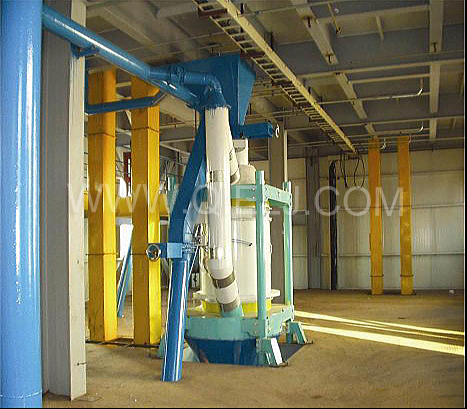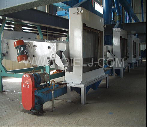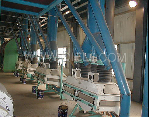 清理工序:采用磁選器去除鐵雜;振動清理篩去除大雜、秸稈等;比重去石機去除石子和磚塊等重雜;除塵系統(tǒng)采用單聯(lián)剎克龍以及離心風(fēng)機進行有效的除塵,以保證車間衛(wèi)生和清理輕雜。