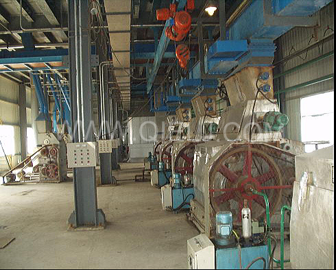 軋胚工序:采用液壓緊輥軋胚機,較好的破壞油料細胞組織,以保證軋坯片薄而均勻,有韌性,粉末度小。
